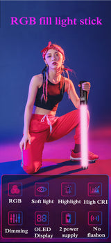 Enhance your photography with this LED Handheld Light Stick, featuring adjustable temperature, ice light effect, and RGB color temperature.